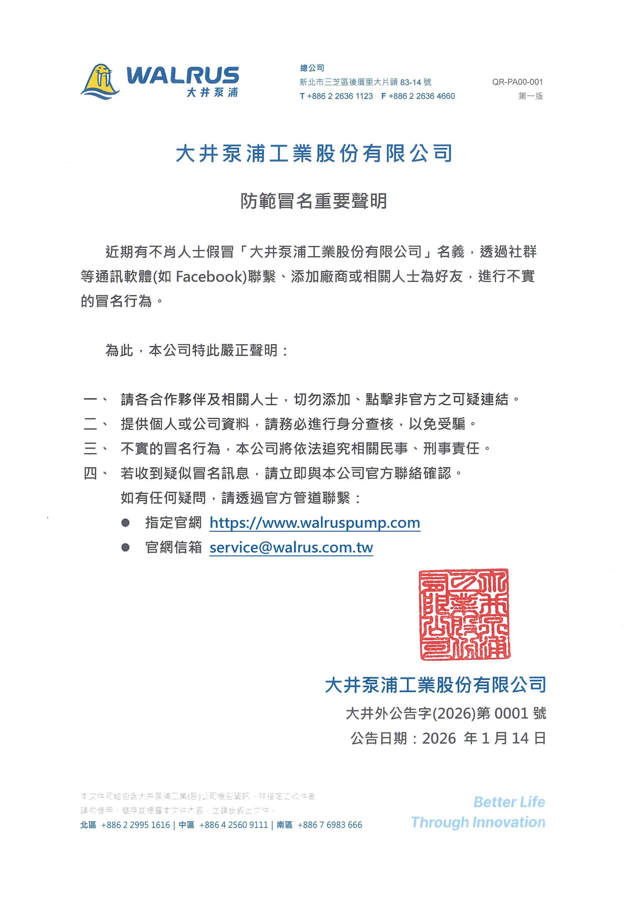 防範冒名重要聲明