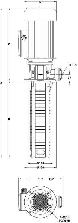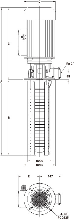 █ 多段浸水式離心泵浦,浸水自吸式,馬達與泵採連軸器耦合,主要動作零件採不銹鋼結構設計,確保無腐蝕操作。